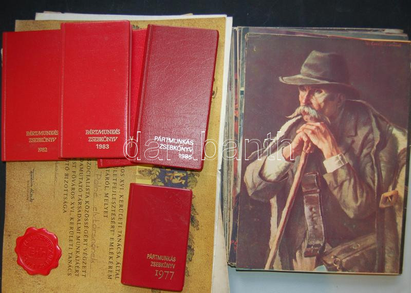 cca 1900-1960 Hagyaték tétel: 19 db szocialista oklevél, szakszervezeti okmány + a Pesti Hirlap Vasárnap mellékletének kb 100 db címlapja + 5 pártmunkás zsebkönyv