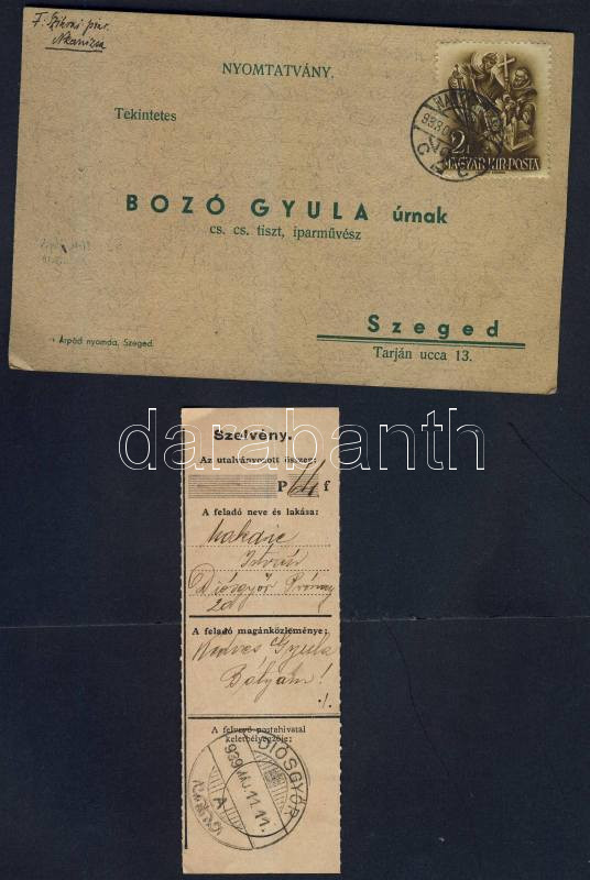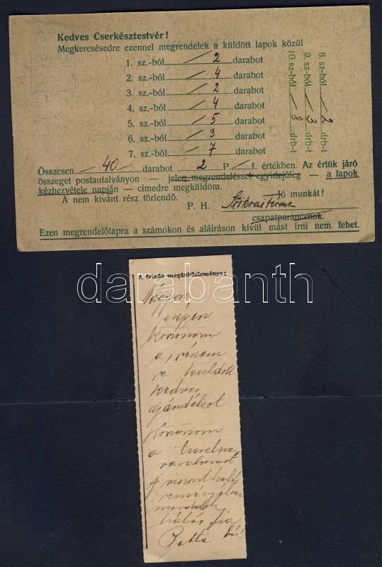 1938 Cserkész-képeslap megrendelő lap BOzó Gyula grafikusnak elküldve + befizetési utalvány + befizetési utalvány