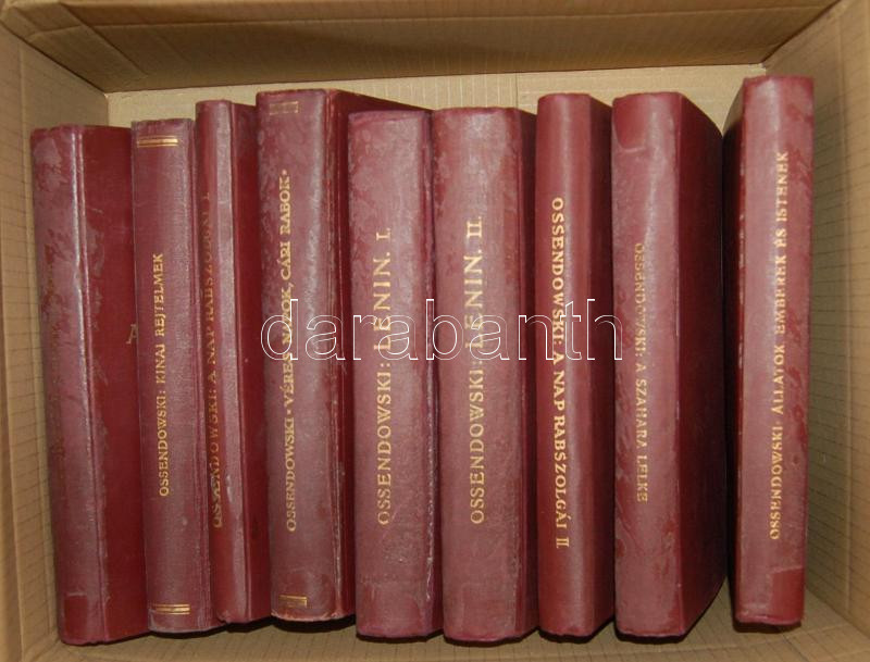 cca 1935 Ossendowski sorozat: 9 kötetben, Frankin társulat, Budapest https://www.darabanth.com/de/111-Fernauktion/111.0/Andere-Sammelgebiete/~1000070/cca-1935-Ossendowski-sorozat-9-kotetben-Frankin-tarsulat-Budapest~II281860