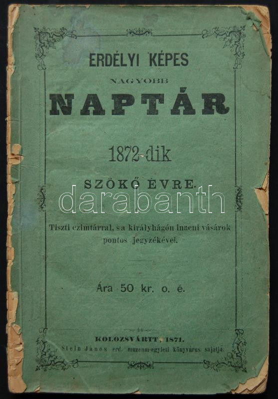 1872 Erdélyi Képes Naptár illetékbélyeggel https://www.darabanth.com/de/111-Fernauktion/111.0/Andere-Sammelgebiete/~1000071/1872-Erdelyi-Kepes-Naptar-illetekbelyeggel~II280805