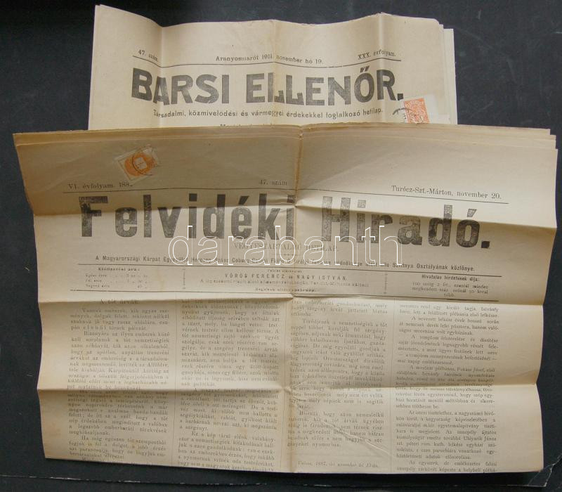 1881-1912 Felvidéki Híradó és Barsi Ellenőr c. újságok hírlapbélyeggel https://www.darabanth.com/de/111-Fernauktion/111.0/Andere-Sammelgebiete/~1000071/1881-1912-Felvideki-Hirado-es-Barsi-Ellenor-c-ujsagok-hirlapbelyeggel~II279386