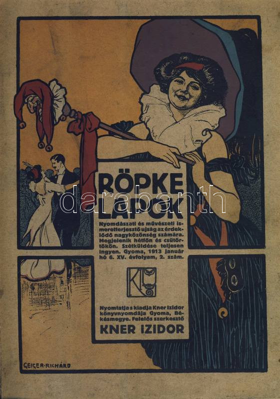 1913 Röpke Lapok. Nyomdászati és művészeti időszaki ismeretterjesztő ujság az érdeklődő nagyközönség számára. Megjelenik rendszertelenül. Szerk. és kiad. Kner Izidor, Gyoma XV. évf. 2. sz. (hátlap hiányzik)
