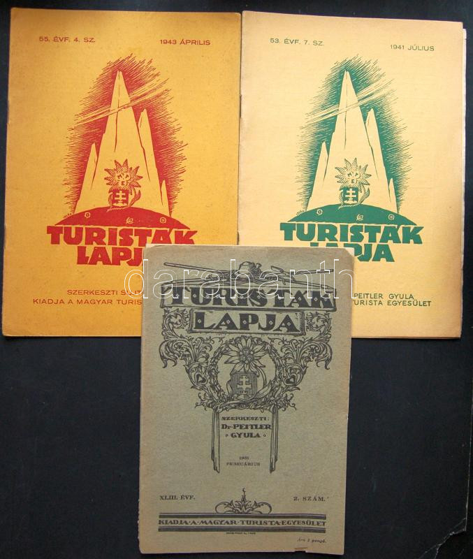1931-1943 3db Turisták lapja, jó állapotban https://www.darabanth.com/de/111-Fernauktion/111.0/Andere-Sammelgebiete/~1000071/1931-1943-3db-Turistak-lapja-jo-allapotban~II278585