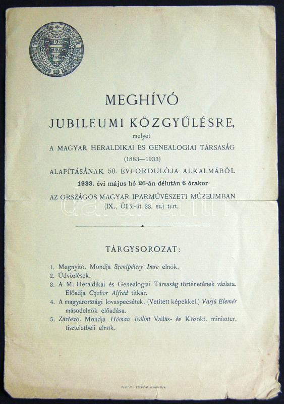 Beschreibung: 1933 Heraldikai és geneololgiai társaság meghívója