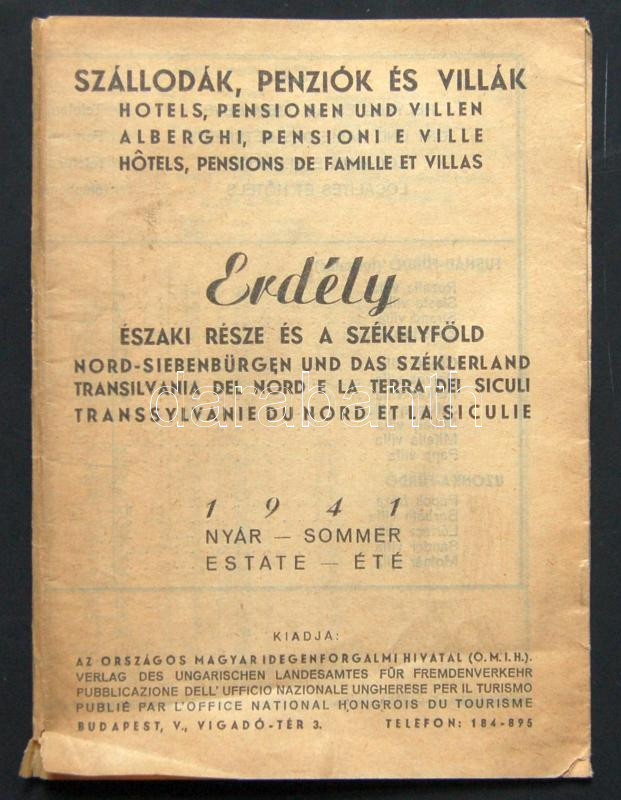 Beschreibung: 1941 Erdély északi része: szállodák, panziók turisztikai kiadvány / Northern Transylvania hotels, pensions; turistic guide
