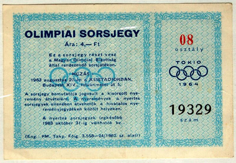 1963 Tokio olimpiai sorsjegy / Tokyo Olympic games lottery https://www.darabanth.com/de/111-Fernauktion/111.0/Andere-Sammelgebiete/~1000071/1963-Tokio-olimpiai-sorsjegy-Tokyo-Olympic-games-lottery~II280745