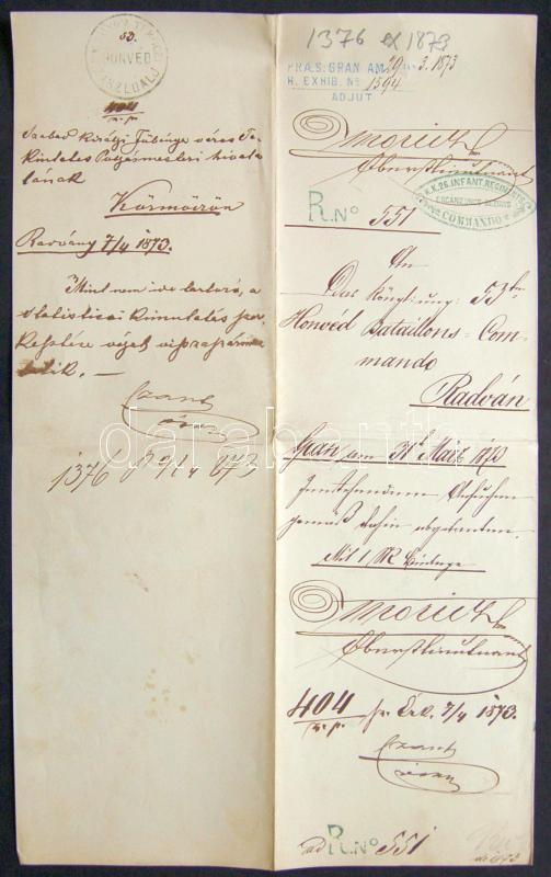 1873 Katonai okmány klf pecsétekkel / Military document https://www.darabanth.com/de/111-Fernauktion/111.0/Andere-Sammelgebiete/~1000072/1873-Katonai-okmany-klf-pecsetekkel-Military-document~II279350