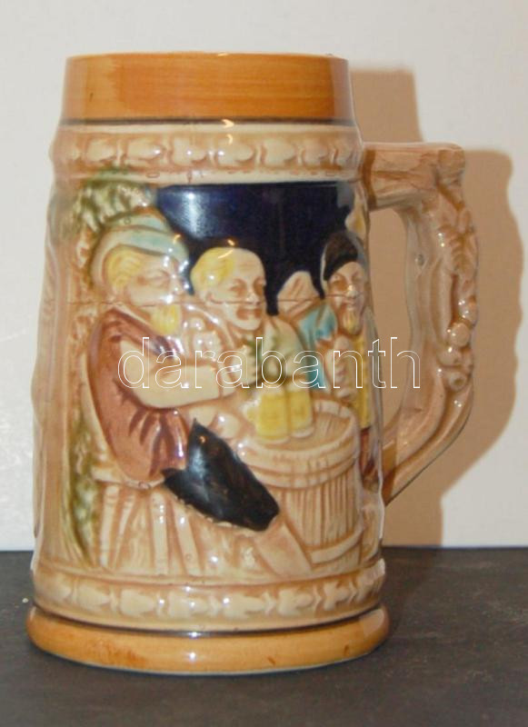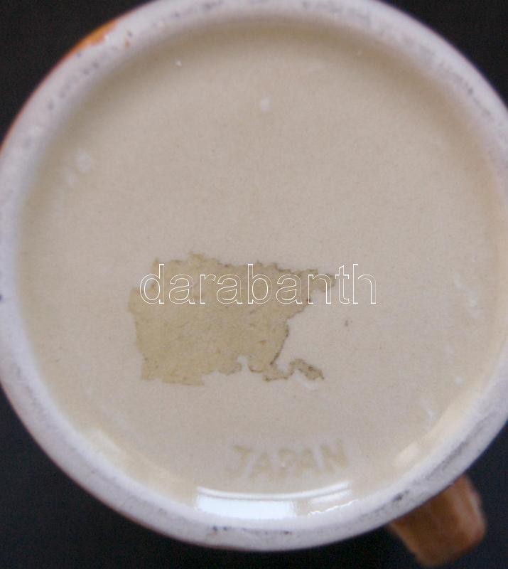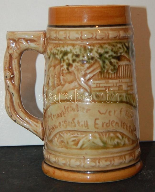 Beschreibung: Japánban készített német nyelvű felirattal ellátott söröskorsó mázas kerámiából, 13cm-es magassággal