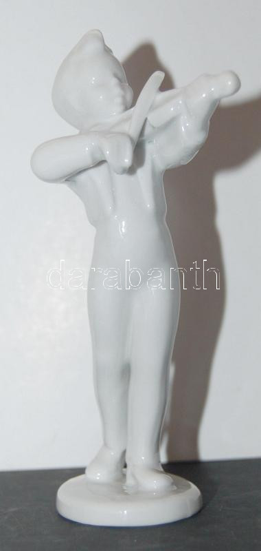 Beschreibung: Jelzés nélküli hegedülő kisfiú porcelán szobra 14cm-es magassággal, hibátlan állapotban