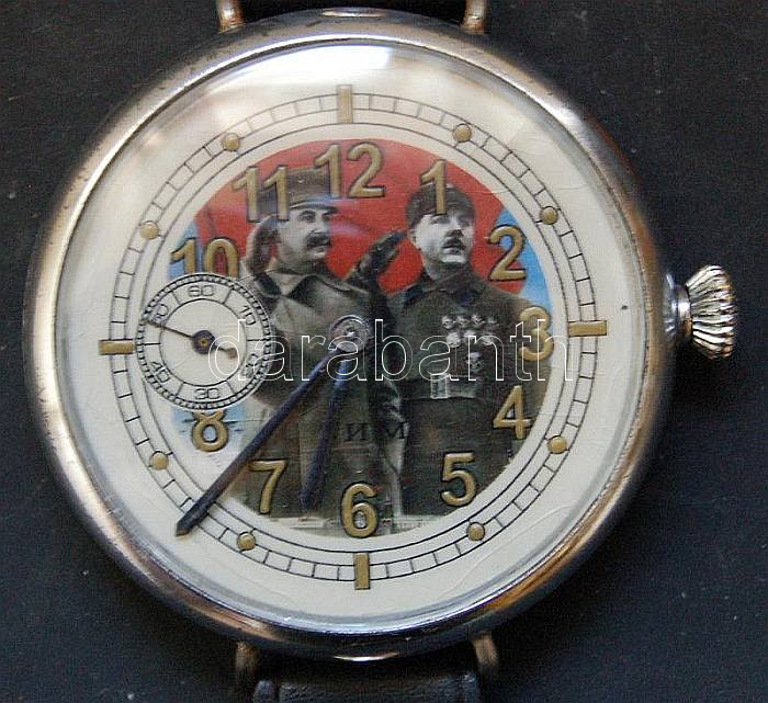 Nagyméretű Sztálinos óralappal ellátott karóra, vörös-csillag gravíroz... https://www.darabanth.com/de/111-Fernauktion/111.0/Andere-Sammelgebiete/~1000073/Nagymeretu-Sztalinos-oralappal-ellatott-karora-voros-csillag-gravirozassal-a-hatlapon-m~II280279