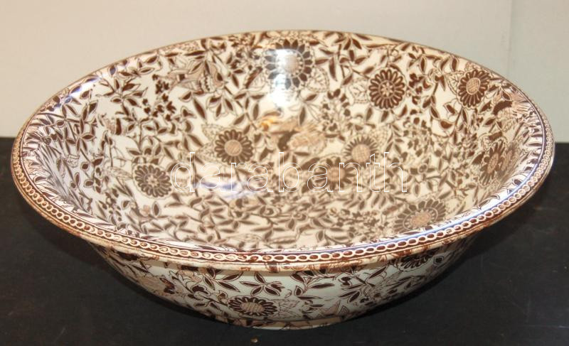 Beschreibung: Rendkívül dekoratív régi öblös kerámia lavór virágdíszítéssel, pereme alsó felén kis letöréssel, 37cm-es átmérővel