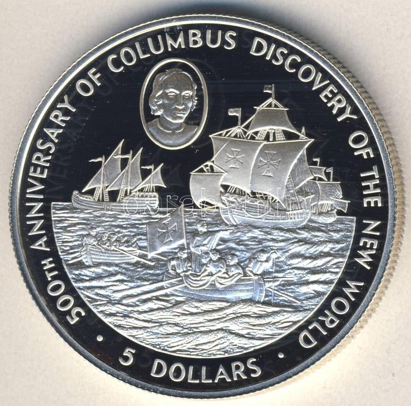 Kajmán-szigetek 1988. 5$ Ag "500 éve fedezte fel Kolumbusz Amerikát" T... https://www.darabanth.com/de/111-Fernauktion/111.0/Numismatik/~1000216/Kajman-szigetek-1988-5USD-Ag-500-eve-fedezte-fel-Kolumbusz-Amerikat-TPP-Csak-10000db~II279409