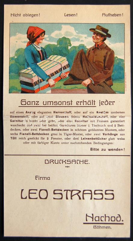 Beschreibung: Leo Strauss reklám nyomtatvány