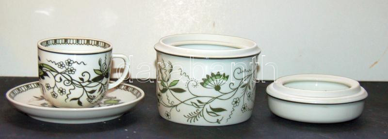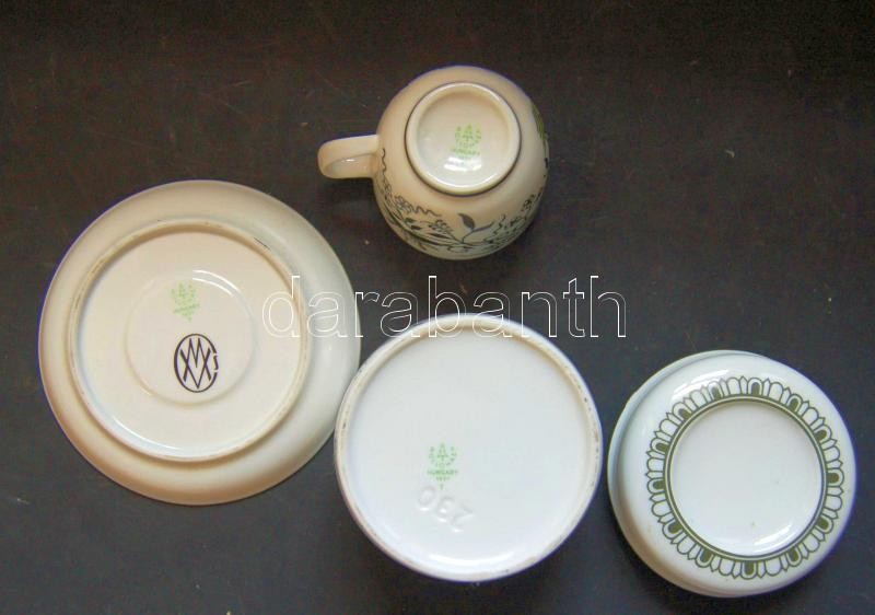 Beschreibung: Csepel művek jelzéssel ellátott hollóházi kávéscsésze és cukortartó