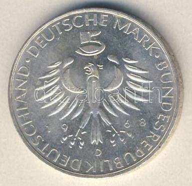 NSZK 1968. 5M Ag "Pettenkofer" T:1 https://www.darabanth.com/de/112-Fernauktion/112.0/Numismatik/~407/NSZK-1968-5M-Ag-Pettenkofer-T1~II286248