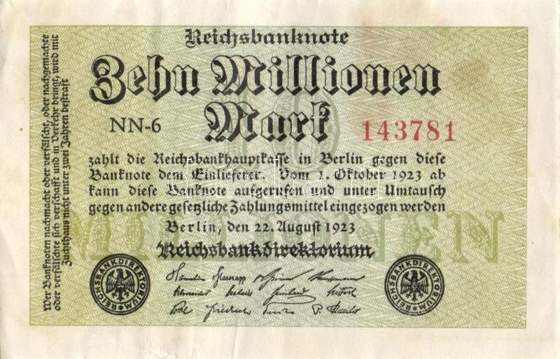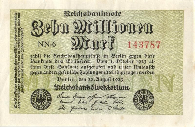 Beschreibung: Német Birodalom / Weimari Köztársaság 1923. 10.000.000M (6x) közte kis ugrású ill. egymás utáni sorszámokkal T:II+,II