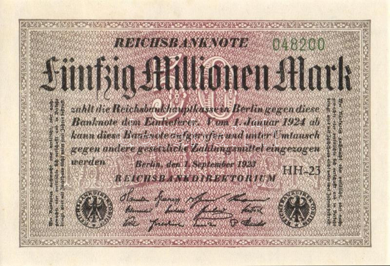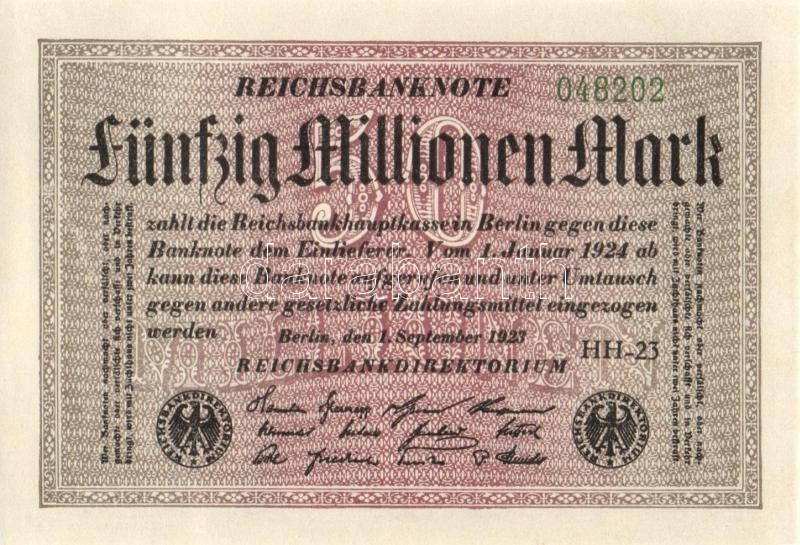 Beschreibung: Német Birodalom / Weimari Köztársaság 1923. 50.000.000M (3x) egymás utáni ill. kis ugrású sorszámokkal T:I
