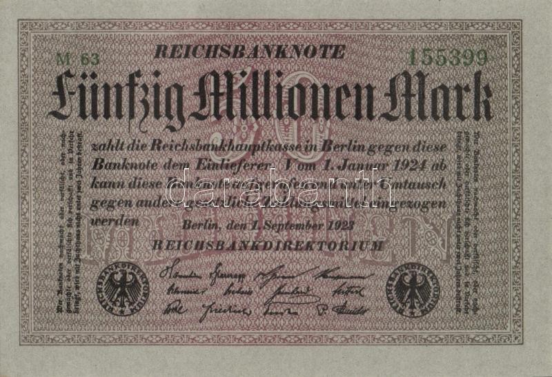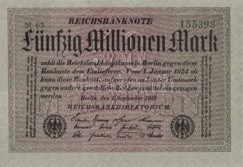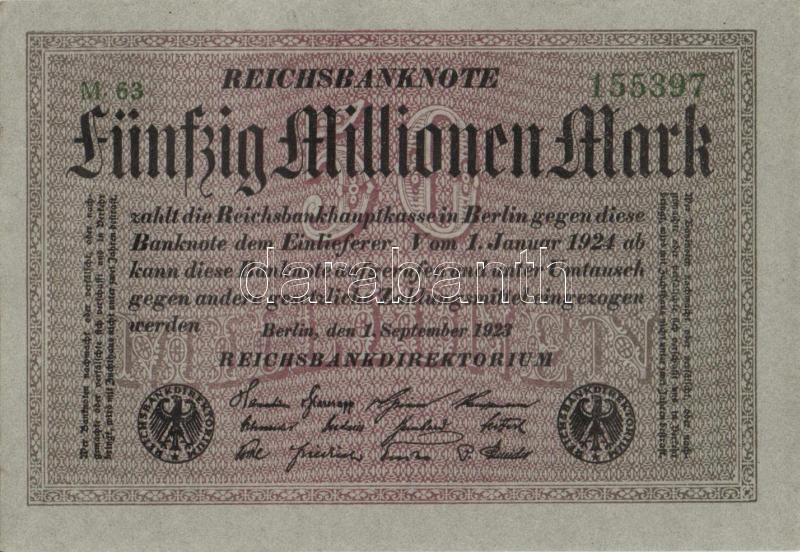 Beschreibung: Német Birodalom / Weimari Köztársaság 1923. 50.000.000M (4x) szürke papíron, egymás utáni sorszámokkal T:I
