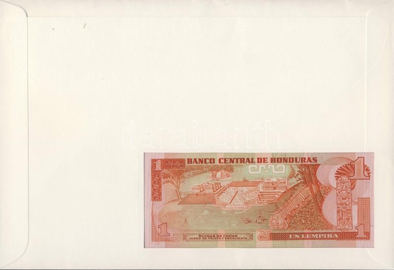 Honduras 1989. 1L dekoratív, nagyalakú bankjegyes, bélyeges borítékon,... https://www.darabanth.com/de/112-Fernauktion/112.0/Numismatik/~410/Honduras-1989-1L-dekorativ-nagyalaku-bankjegyes-belyeges-boritekon-belyegblokkal-TI~II286029