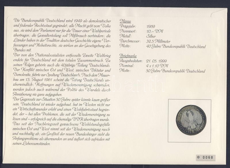 Beschreibung: NSZK 1989. 10M Ag "40 éves az NSZK" érmés borítékon bélyeg-kisívvel, elsőnapi bélyegzővel, hátoldali ismertető tanúsítvánnyal T:BU
