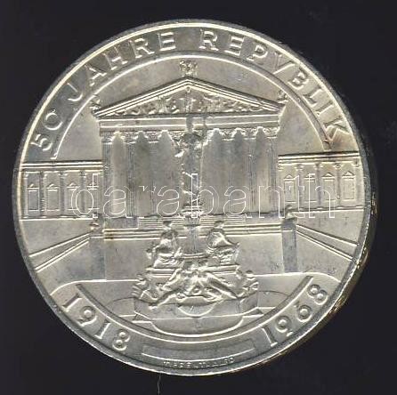Ausztria 1968. 50Sch Ag "50 éves a Köztársaság" T:2+ https://www.darabanth.com/de/112-Fernauktion/112.0/Numismatik/~418/Ausztria-1968-50Sch-Ag-50-eves-a-Koztarsasag-T2plus~II286146