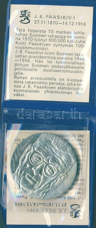 Finnország 1970. 10M Ag "Paasikivi elnök" T:BU Eredeti tokban, tanúsít... https://www.darabanth.com/de/112-Fernauktion/112.0/Numismatik/~418/Finnorszag-1970-10M-Ag-Paasikivi-elnok-TBU-Eredeti-tokban-tanusitvannyal~II275140