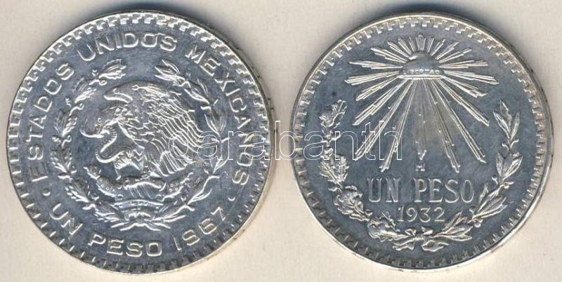 Mexikó 1932. 1P Ag T:2 + 1967. 1P Ag T:2/3 https://www.darabanth.com/de/112-Fernauktion/112.0/Numismatik/~418/Mexiko-1932-1P-Ag-T2-plus-1967-1P-Ag-T23~II286327