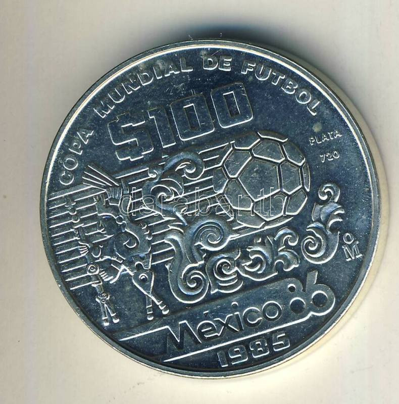 Mexikó 1985. 100P Ag "Mexikói Labdarúgó VB-művészi dizájn, labda" T:BU https://www.darabanth.com/de/112-Fernauktion/112.0/Numismatik/~418/Mexiko-1985-100P-Ag-Mexikoi-Labdarugo-VB-muveszi-dizajn-labda-TBU~II284885