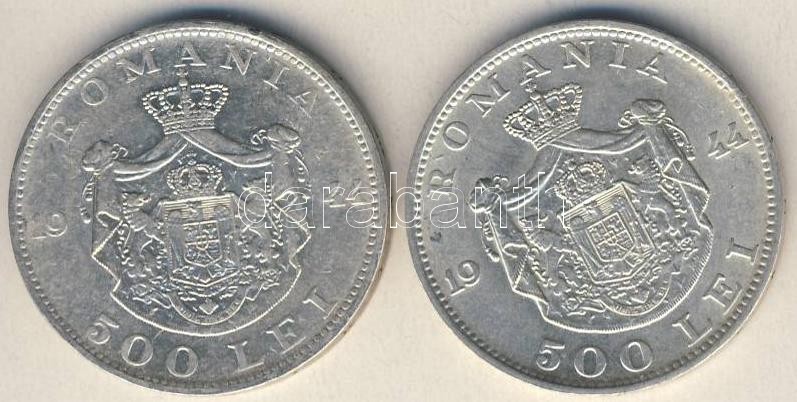 Románia 1944. 500L Ag (2x) T:2 https://www.darabanth.com/de/112-Fernauktion/112.0/Numismatik/~418/Romania-1944-500L-Ag-2x-T2~II286356