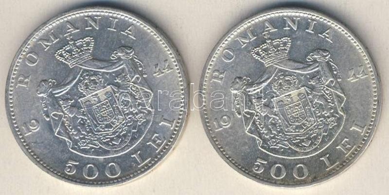 Románia 1944. 500L Ag (2x) T:2 https://www.darabanth.com/de/112-Fernauktion/112.0/Numismatik/~418/Romania-1944-500L-Ag-2x-T2~II286358