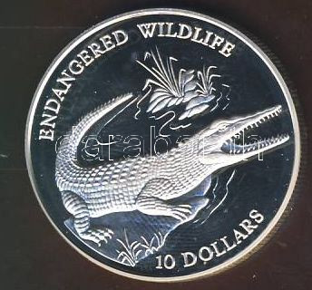 Beschreibung: Salamon szigetek 1992. 10$ Ag "Veszélyeztetett állatvilág-krokodil" T:PP