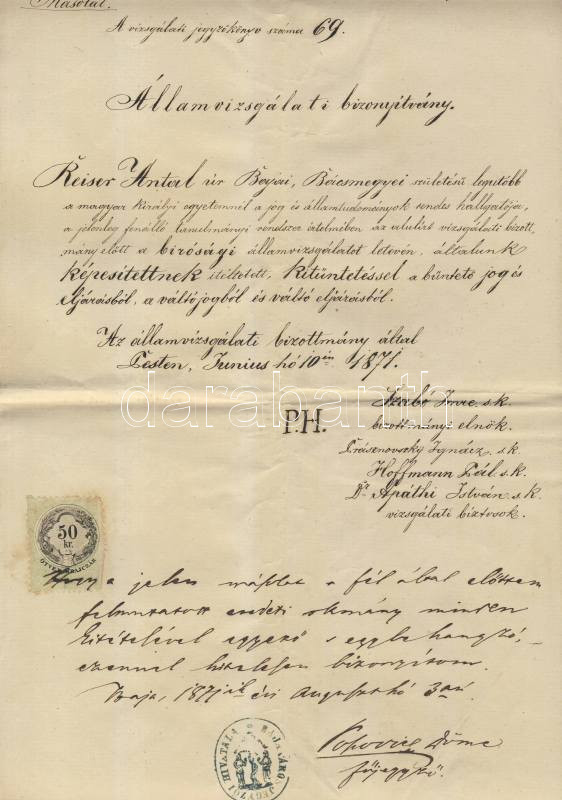 1871-1930 Államvizsga bizonyítvány (Pest) és gyógyszergyakornoki végbi... https://www.darabanth.com/de/113-Fernauktion/113.0/Andere-Sammelgebiete/~100069/1871-1930-Allamvizsga-bizonyitvany-Pest-es-gyogyszergyakornoki-vegbizonyitvany-pecsettel-~II290548