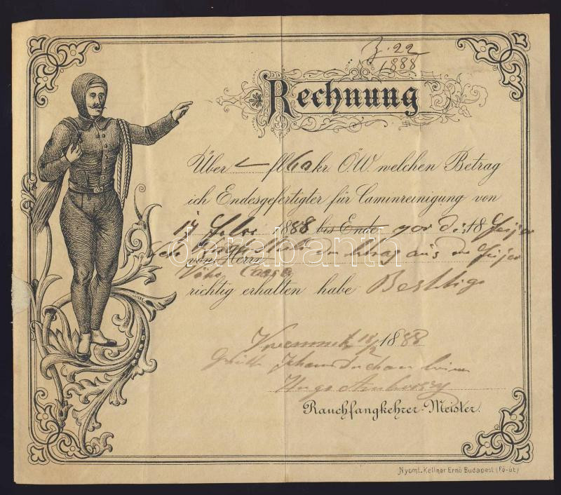 1888 Litho kéményseprő számla / Litho chimneysweep invoice https://www.darabanth.com/de/113-Fernauktion/113.0/Andere-Sammelgebiete/~100069/1888-Litho-kemenysepro-szamla--Litho-chimneysweep-invoice~II278552