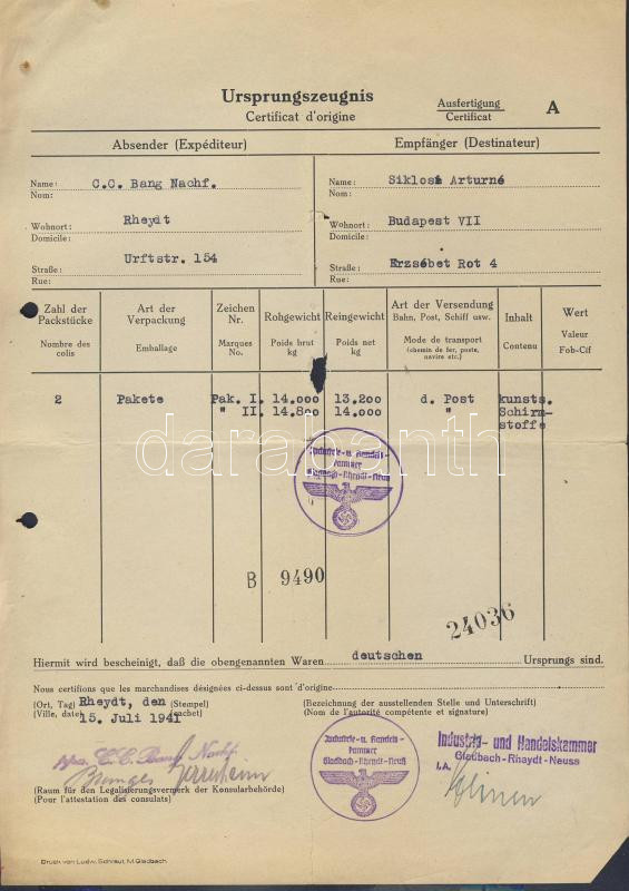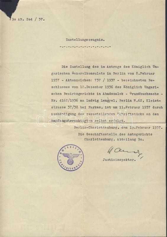 cca 1937 2db horogkeresztes pecséttel ellátott irat, tanúsítvány https://www.darabanth.com/de/113-Fernauktion/113.0/Andere-Sammelgebiete/~100069/cca-1937-2db-horogkeresztes-pecsettel-ellatott-irat-tanusitvany~II287983