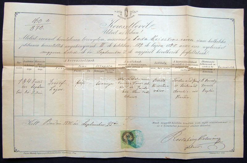 Beschreibung: 1870 Rostaházy Kálmán író, országgyűlési képviselő aláírása