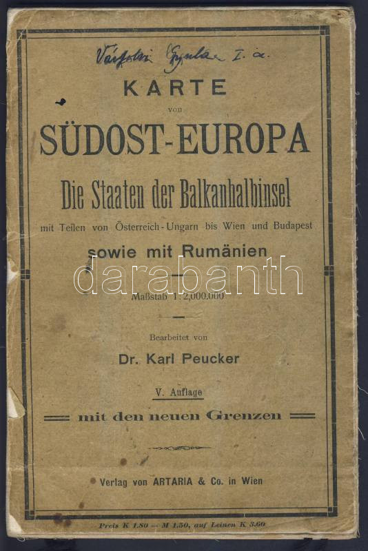 1913 Südost Europa térképe nagy méretben német nyelven az Artaria kiad... https://www.darabanth.com/de/113-Fernauktion/113.0/Andere-Sammelgebiete/~100074/1913-Sudost-Europa-terkepe-nagy-meretben-nemet-nyelven-az-Artaria-kiadotol-Becs~II290543