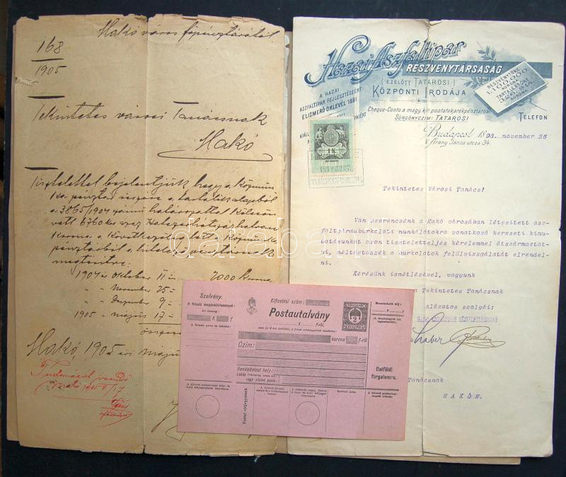 1898 Elismerő oklevél és kifizetési papír a Hazai Aszfaltipar fejleszt... https://www.darabanth.com/de/113-Fernauktion/113.0/Andere-Sammelgebiete/~100078/1898-Elismero-oklevel-es-kifizetesi-papir-a-Hazai-Aszfaltipar-fejleszteseert-Makon~II290523