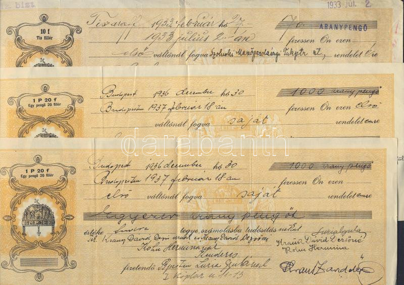 1933-1936 3db 1P 20f és 10f váltók https://www.darabanth.com/de/113-Fernauktion/113.0/Andere-Sammelgebiete/~100078/1933-1936-3db-1P-20f-es-10f-valtok~II288075