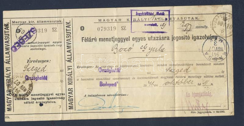 1941 Magyar Királyi Államvasutak által kiállított félárú menetjegy https://www.darabanth.com/de/113-Fernauktion/113.0/Andere-Sammelgebiete/~100078/1941-Magyar-Kiralyi-Allamvasutak-altal-kiallitott-felaru-menetjegy~II290406