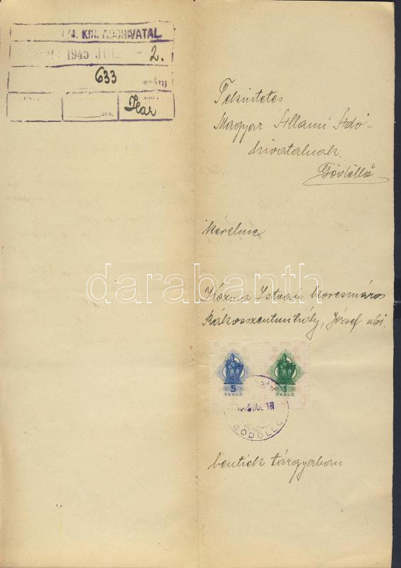1945 Kozma István rákosszentmihályi korcsmáros kérelme az adóhivatalho... https://www.darabanth.com/de/113-Fernauktion/113.0/Andere-Sammelgebiete/~100078/1945-Kozma-Istvan-rakosszentmihalyi-korcsmaros-kerelme-az-adohivatalhoz-okmanybelyeggel~II287987