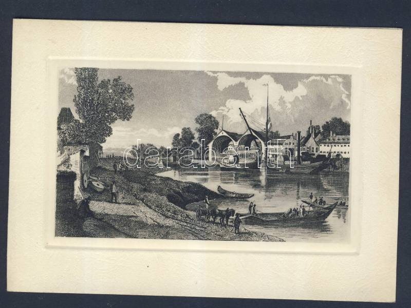 Beschreibung: Ganz Óbudai hajógyár üdvözlőlapja a hajógyárat ábrázoló szignált rézkarccal 17x12 cm