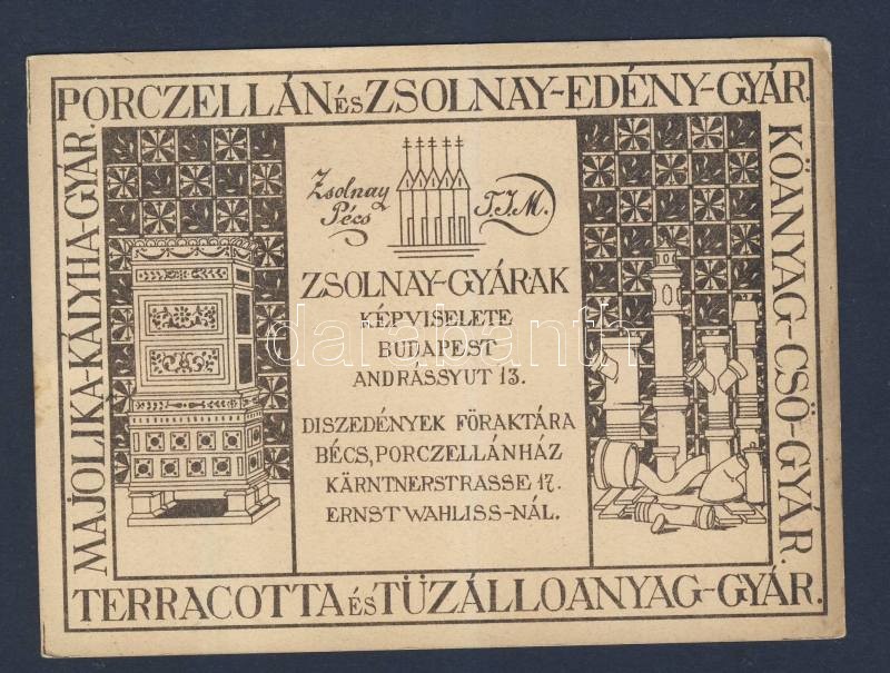 cca 1900 Zsolnay porcelángyár reklám / Zsolnay chinaware factory comme... https://www.darabanth.com/de/113-Fernauktion/113.0/Andere-Sammelgebiete/~100078/cca-1900-Zsolnay-porcelangyar-reklam-Zsolnay-chinaware-factory-commercial-15x11-cm~II286535