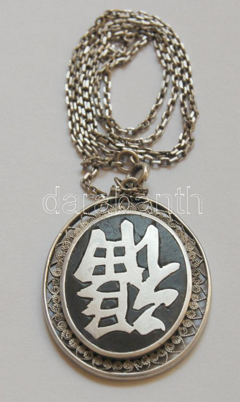 Beschreibung: Kínai modern ezüst (Ag) medál, láncon 10,44g