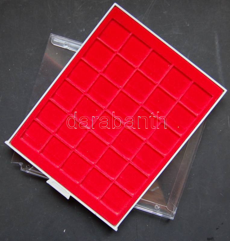 Beschreibung: Lindner éremtartó tálca, 30 férőhellyel, 39x39mm, műanyag tok sérült