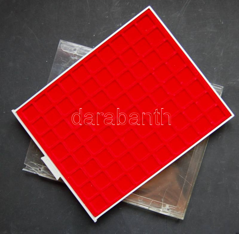 Beschreibung: Lindner éremtartó tálca, 80 férőhellyel, 24x24mm, műanyag tok sérült
