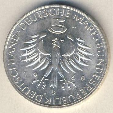 NSZK 1968. 5M Ag "Pettenkofer" T:1 https://www.darabanth.com/de/113-Fernauktion/113.0/Numismatik/~100172/NSZK-1968-5M-Ag-Pettenkofer-T1~II286247