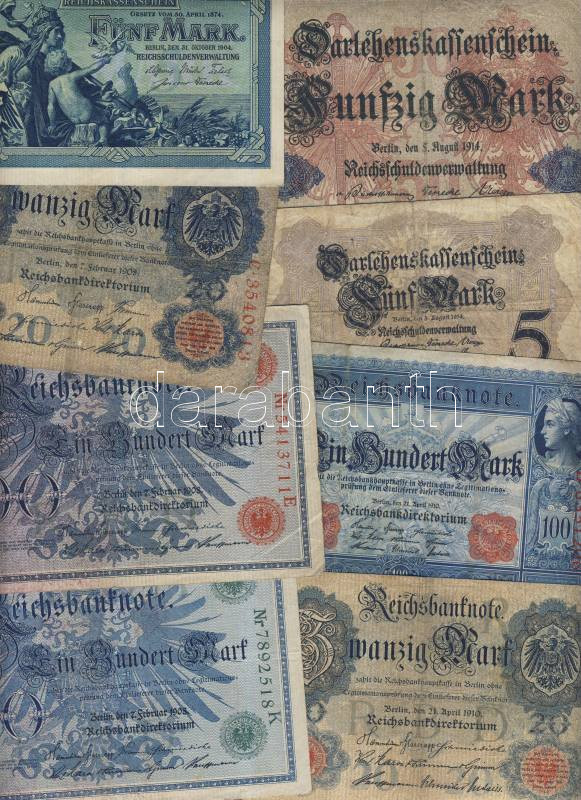 Német Birodalom 1904-től 104 klf db bankjegy Rosenberg-katalógus szerint rendezve; alszámok, vízjel, nyomatkülönbségek, s még sok más szempont alapján, sok jobbal! T:II,II/III,III