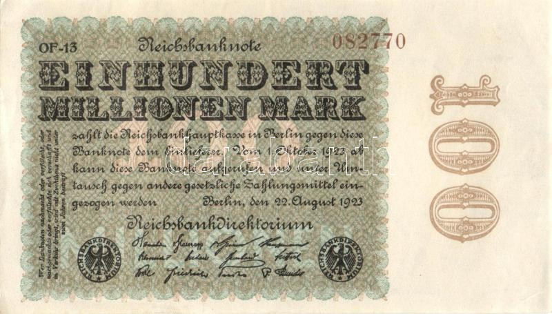 Német Birodalom / Weimari Köztársaság 1923. 100.000.000M (3x) cégnyoma... https://www.darabanth.com/de/113-Fernauktion/113.0/Numismatik/~100172/Nemet-Birodalom-Weimari-Koztarsasag-1923-100000000M-3x-cegnyomat-egymas-utani-sorsza~II284677