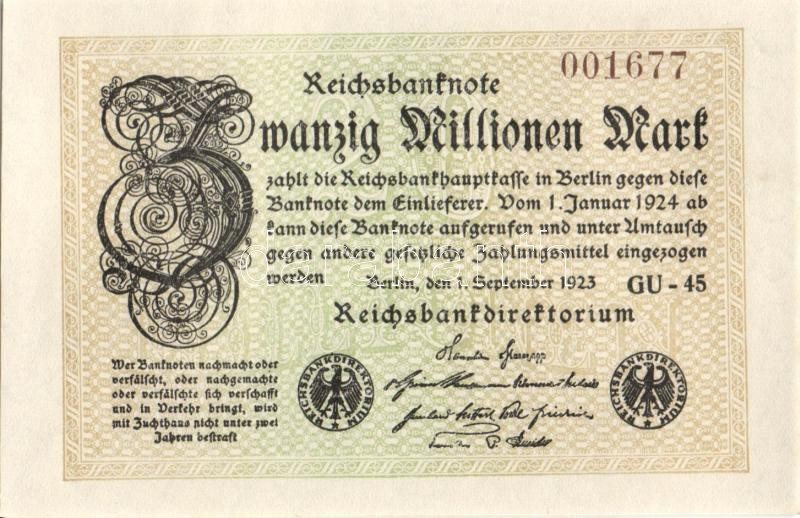 Beschreibung: Német Birodalom / Weimari Köztársaság 1923. 20.000.000M (3x) "Gitter mit 8" vízjellel, egymás utáni sorszámokkal T:I