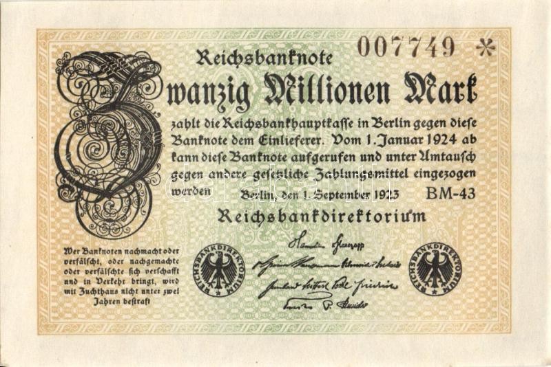 Német Birodalom / Weimari Köztársaság 1923. 20.000.000M (5x) egymás ut... https://www.darabanth.com/de/113-Fernauktion/113.0/Numismatik/~100172/Nemet-Birodalom-Weimari-Koztarsasag-1923-20000000M-5x-egymas-utani-sorszamokkal-TI~II287704